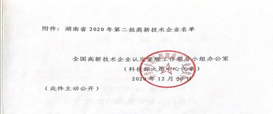 近日,根據全國高新技術企業認定管理工作領導小組公示的《關于湖南省2020年第二批高新技術企業備案的復函》(國科火字〔2020〕253號),湖南省2020年第二批高新技術企業名單出爐,株洲市中建新材料有限公司獲得認定。證書編號:GR202043002913。